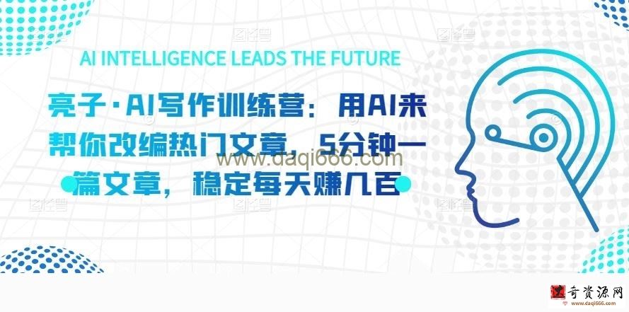 亮子·AI写作训练营:用AI来帮你改编热门文章,5分钟一篇文章,稳定每天赚几百资源简介: