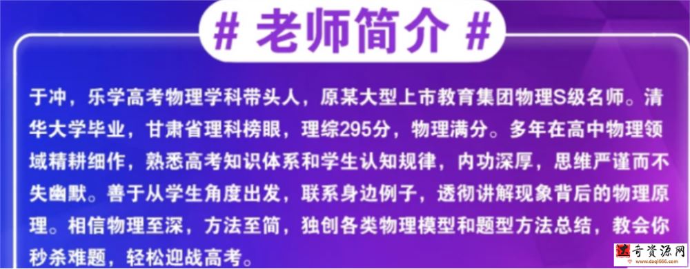 于冲,乐学高考物理学科带头人,原某大型上市教育集团物理S级名师