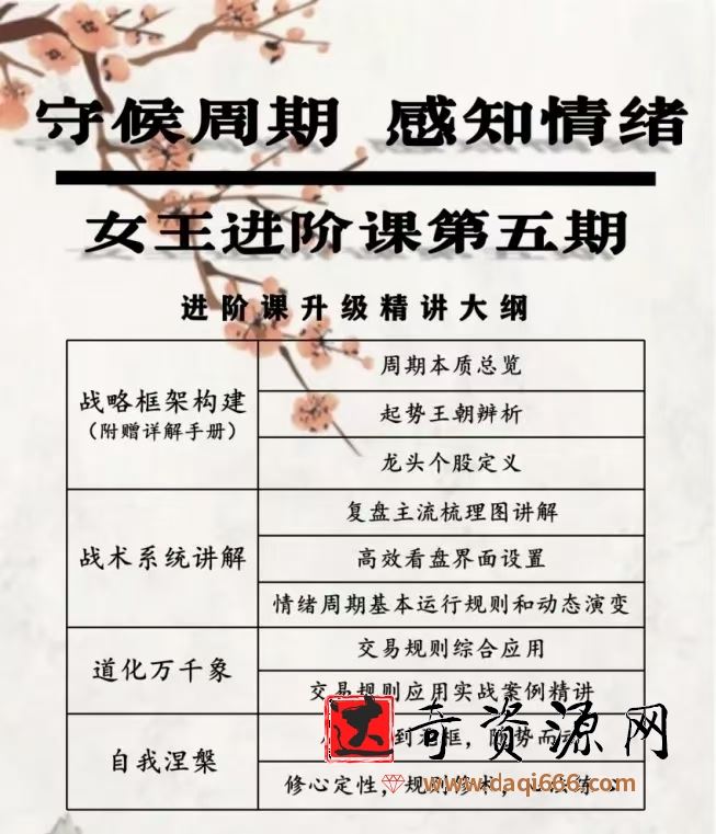[低吸女王]第五期新课上线,女王战略周期,守候周期感知情绪我是人气龙头周期女王,交易只用周期,交易品种只有起势王朝内人气龙头。