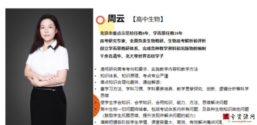 完结 2021寒高一生物直播班目标双一流 周云 名师简介: 北京市重点示范校任教6年,学而思任教10年 高考研究专家,全面负责生物教研、生物高考解析和评析 创立学而思教研体系。完成各种教...