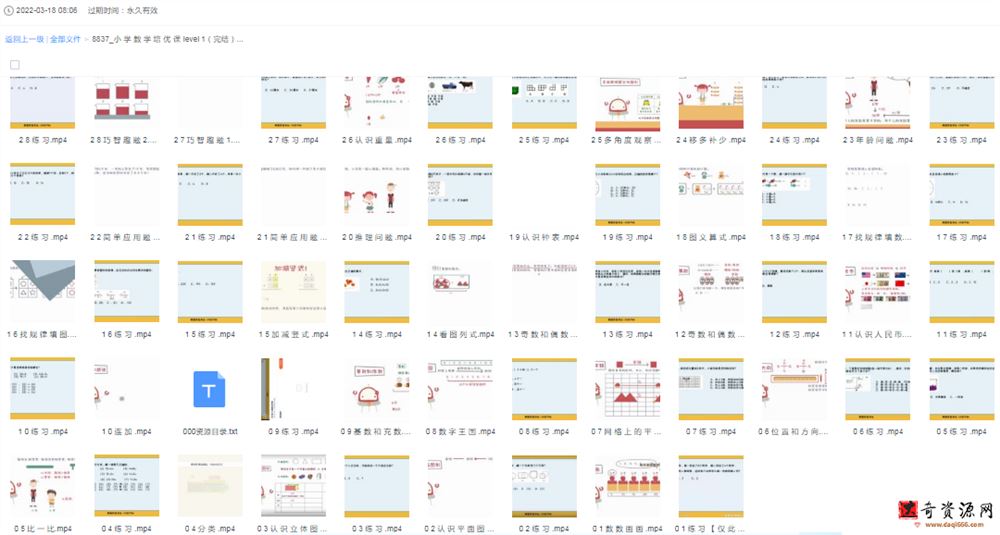 蘑菇培优2021春季三年级卓越班(完结) 资源简介: 蘑菇培优2021春季三年级卓越班,完结版百度网盘小学数学课程13.5G高清视频。 资源目录 01.计算公式\01.计算公式-1.mp4 01.计算公式...