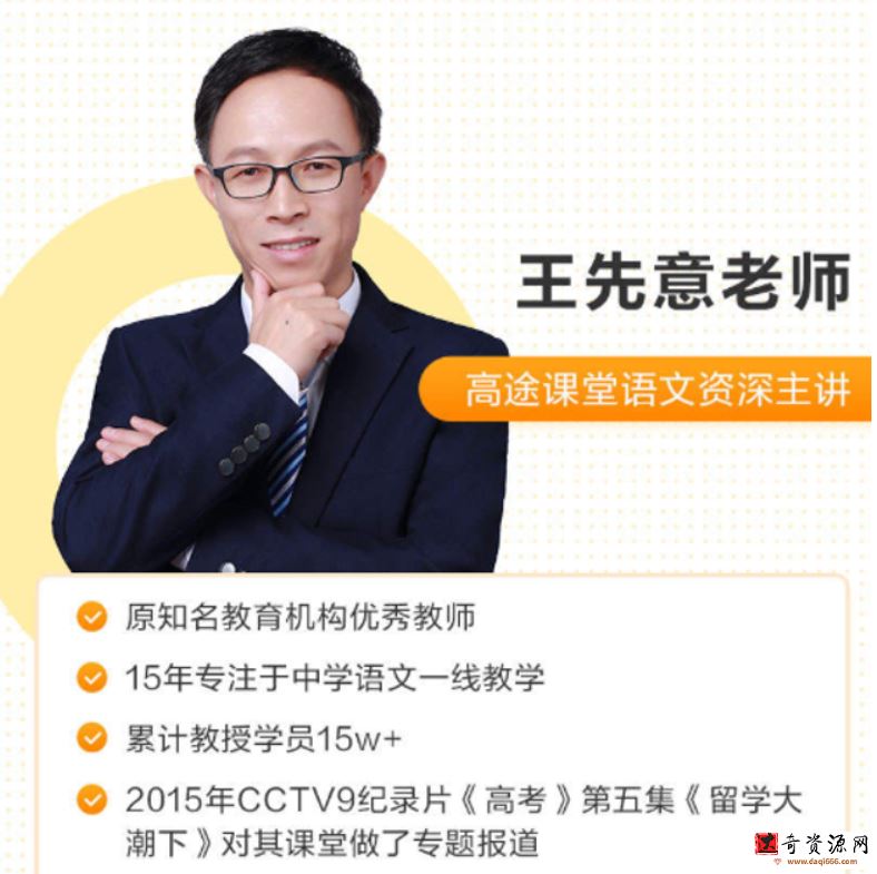 高途王先意2021年暑 初二语文暑期班8讲完结 名师简介: 教师资质教师资格证编号:20074110840003182 教师简介: 高途课堂初中语文资深主讲老师原知名教育机构优秀教师15年专注于中学语...