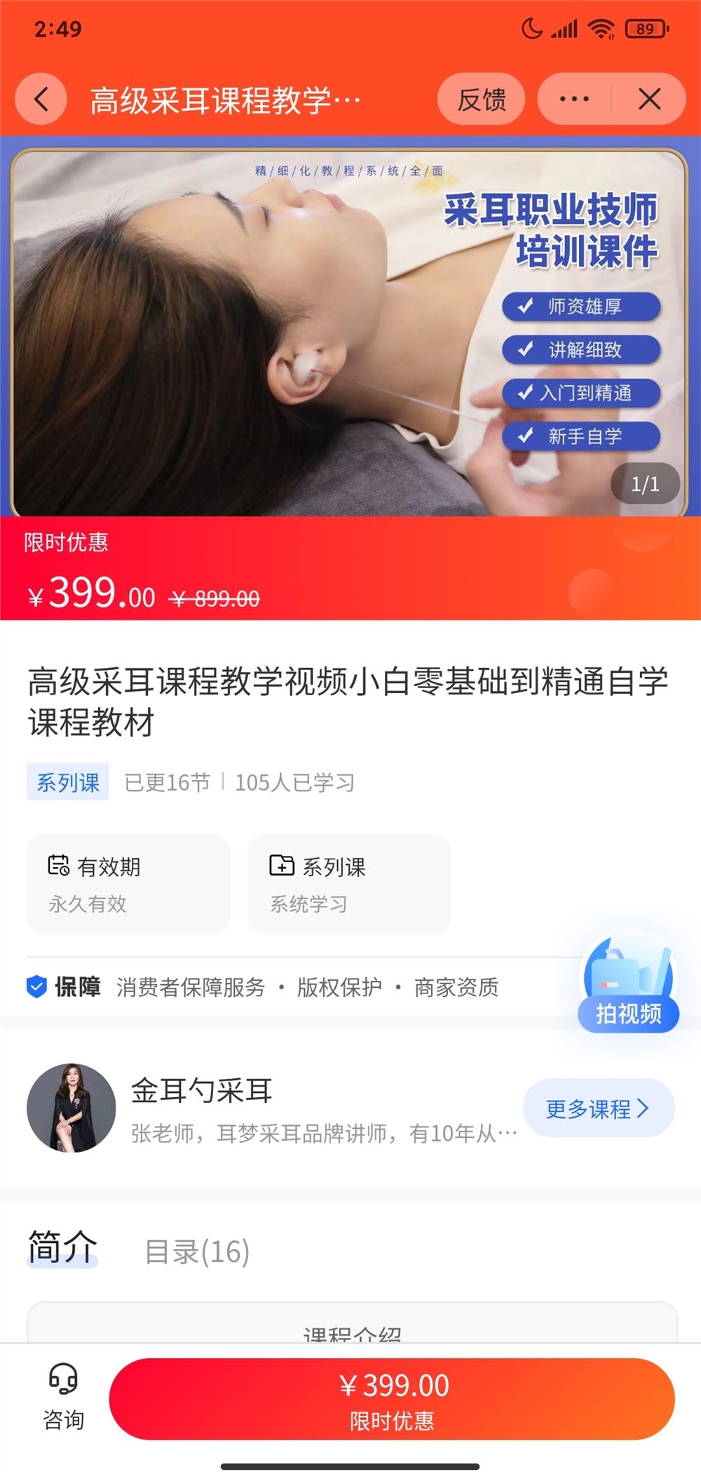 【《A3119【海豚知道】高级采耳课程教学视频小白零基础到精通自学课程教材》】